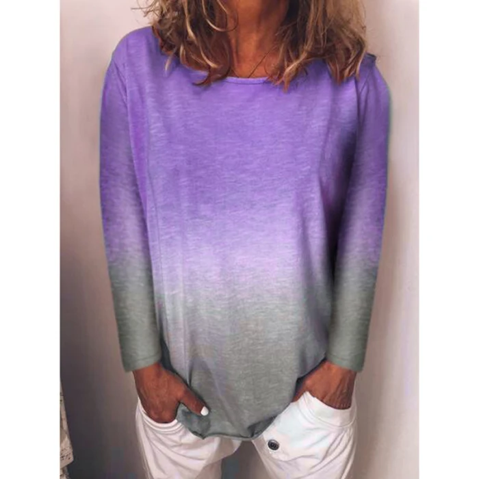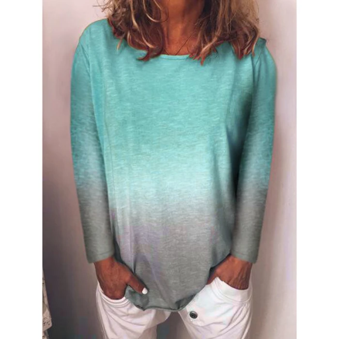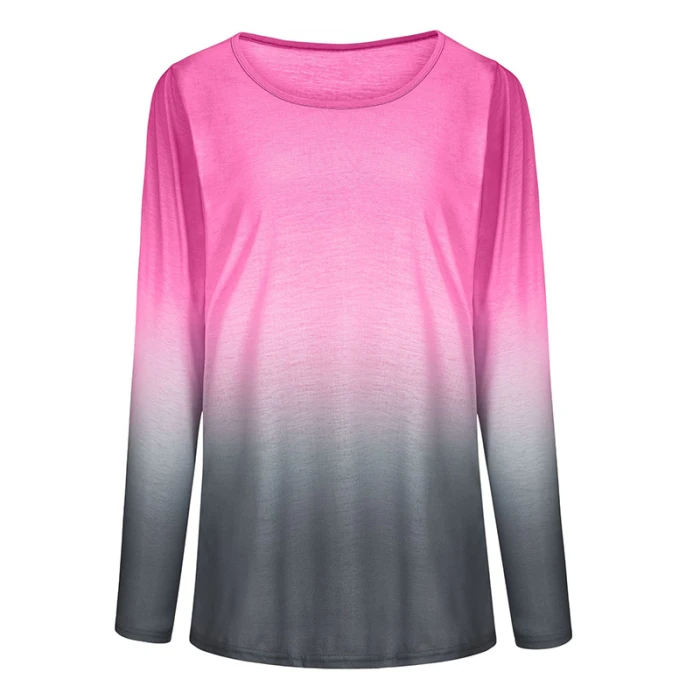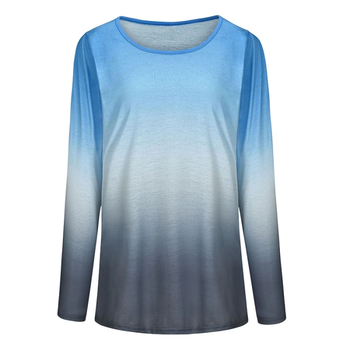 Новая женская футболка с длинным рукавом и круглым воротником градиентного цвета, свободная футболка для пляжа VN 68