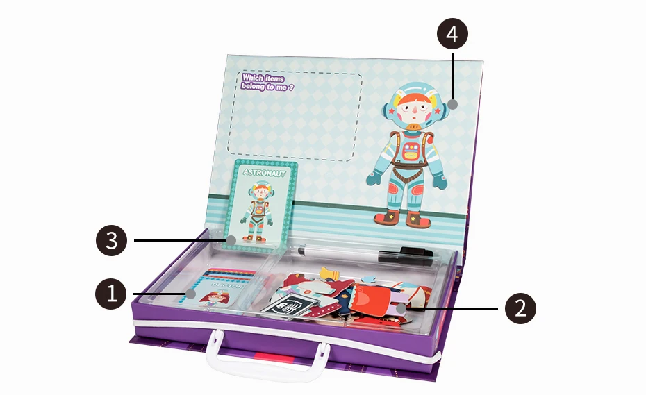 1.Q & A карты 2. Магнитный пазл 3. Инструкция 4. Ручка для доски