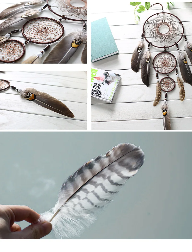 Домашний декор, Ловец снов, Ловец снов ручной работы с коричневыми перьями, круглая сетка для автомобиля, украшение для детской спальни, украшение, подарок для друзей