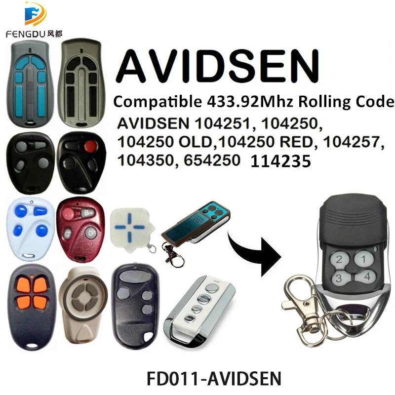 Дверь гаража 433 МГц код прокатки пульт дистанционного управления совместимый AVIDSEN 104251, 104250, 104250 старый, 104250 красный, 104257, 104350
