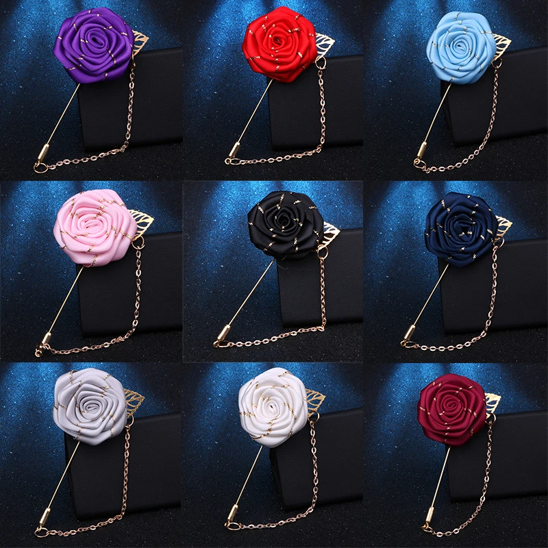 Fashion Ribbon Rose Flower Lapel Pin Fabric Brooch Tassel Chain Suit Brooches
