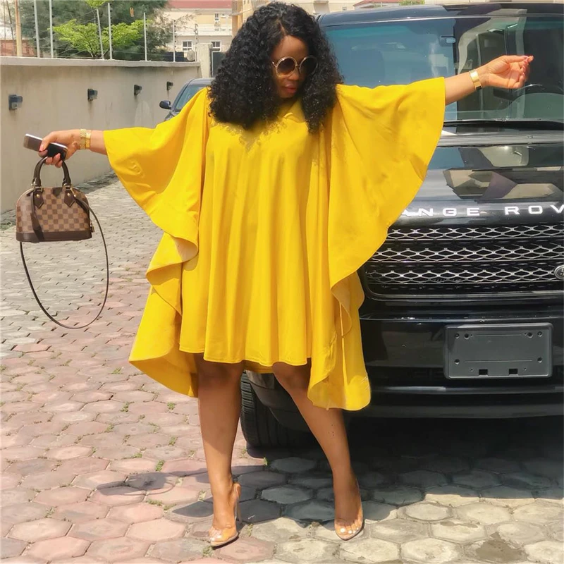 Женское повседневное мини-платье Adogirl, однотонное желтое платье с оборками и большим рукавом-колокольчиком, свободное платье с круглым вырезом на осень 2019
