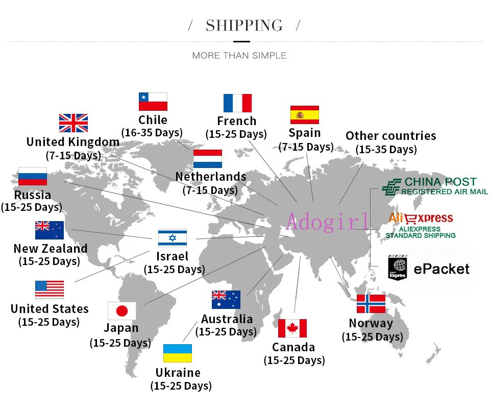 Для оптовой продажи мы предлагаем скидку или бесплатную Экспресс-доставку, которая занимает всего 3-7 дней. По запросу мы можем посылать товары напрямую вашим клиентам, не предоставляя информацию о себе (дропшиппинг).