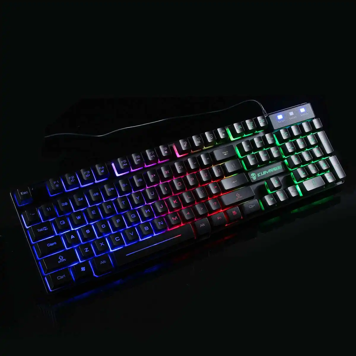 Название: Радужная Подсветка USB игровая клавиатура + 2400DPI 6 кнопок светодиодный комплект игровой мыши + коврик для мыши