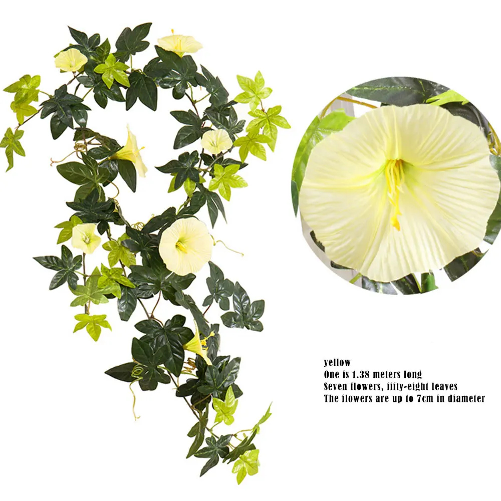 Моделирование Morning Glory ротанга декоративный искусственный цветок Крытый для труб кондиционера Блокировка нагрева пластиковые цветы, растения лоза