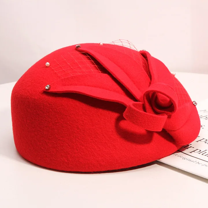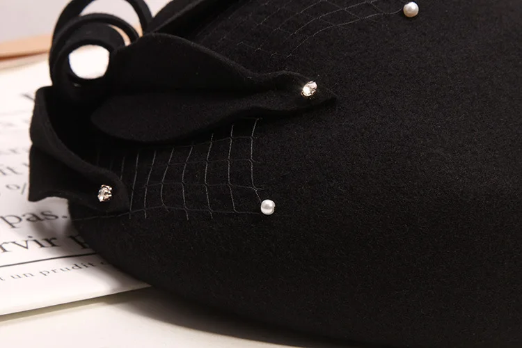 Женская винтажная шляпка-Вуалетка с цветочным принтом, черная шерстяная фетровая шляпа, вечерние шляпы