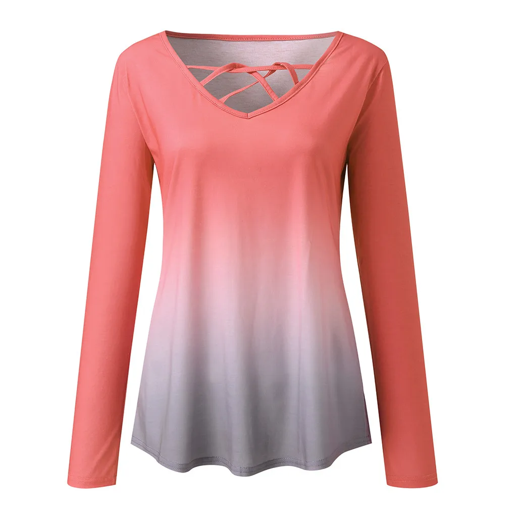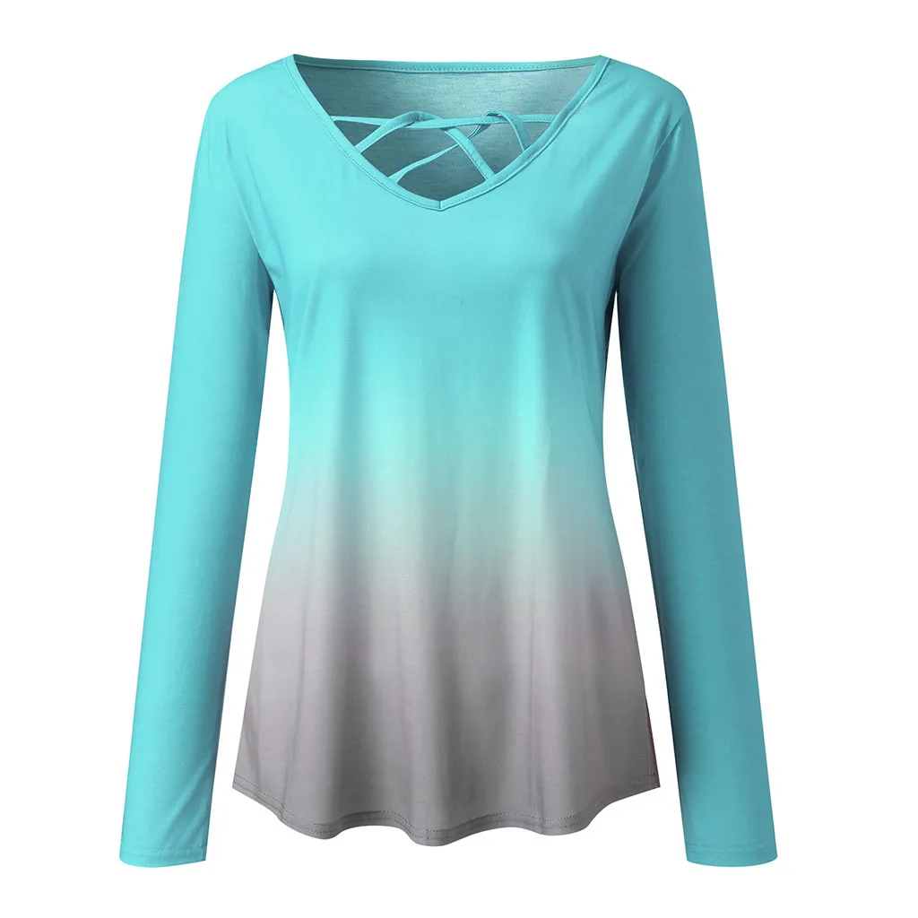 Женская рубашка с длинным рукавом и градиентным узлом спереди, свободная туника, топы