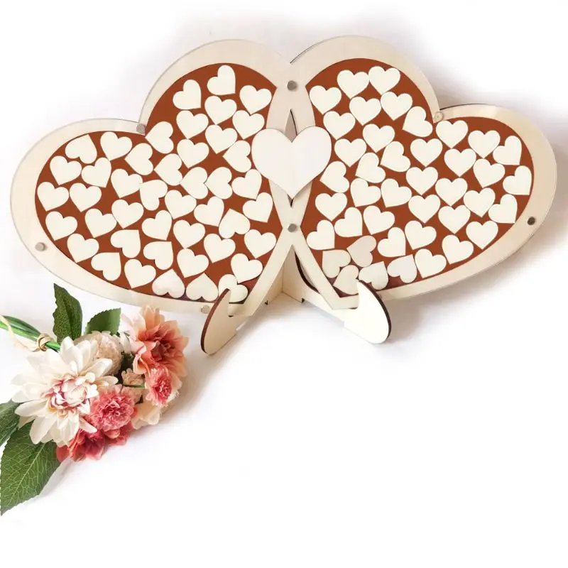 Уникальное Двойное сердце Свадебная Гостевая книга подпись знак с 100 деревянными сердцами падение рамка деревенский Декор
