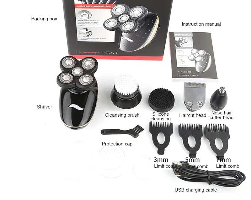 Мужская многофункциональная электробритва usb зарядка моющаяся стрижка носа Очищающая пятиглавый нож для бороды