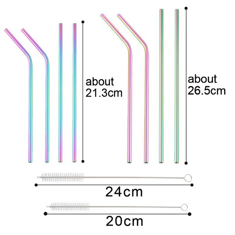Содержание упаковки: 4 прямые соломинки, 4 изогнутые соломинки, 2 кисти