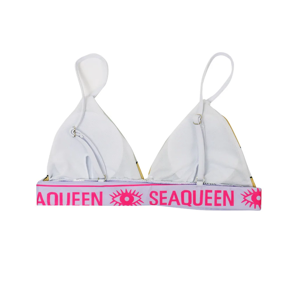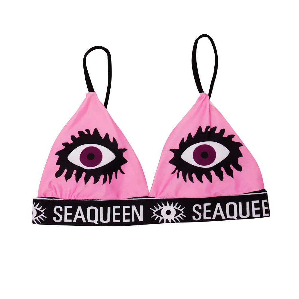 Топы: регулируемые бретельки, сексуальный треугольный бюстгальтер с глубоким v-образным вырезом, широкий эластичный пояс с буквенным принтом, пэчворк под грудью, бесшовные.