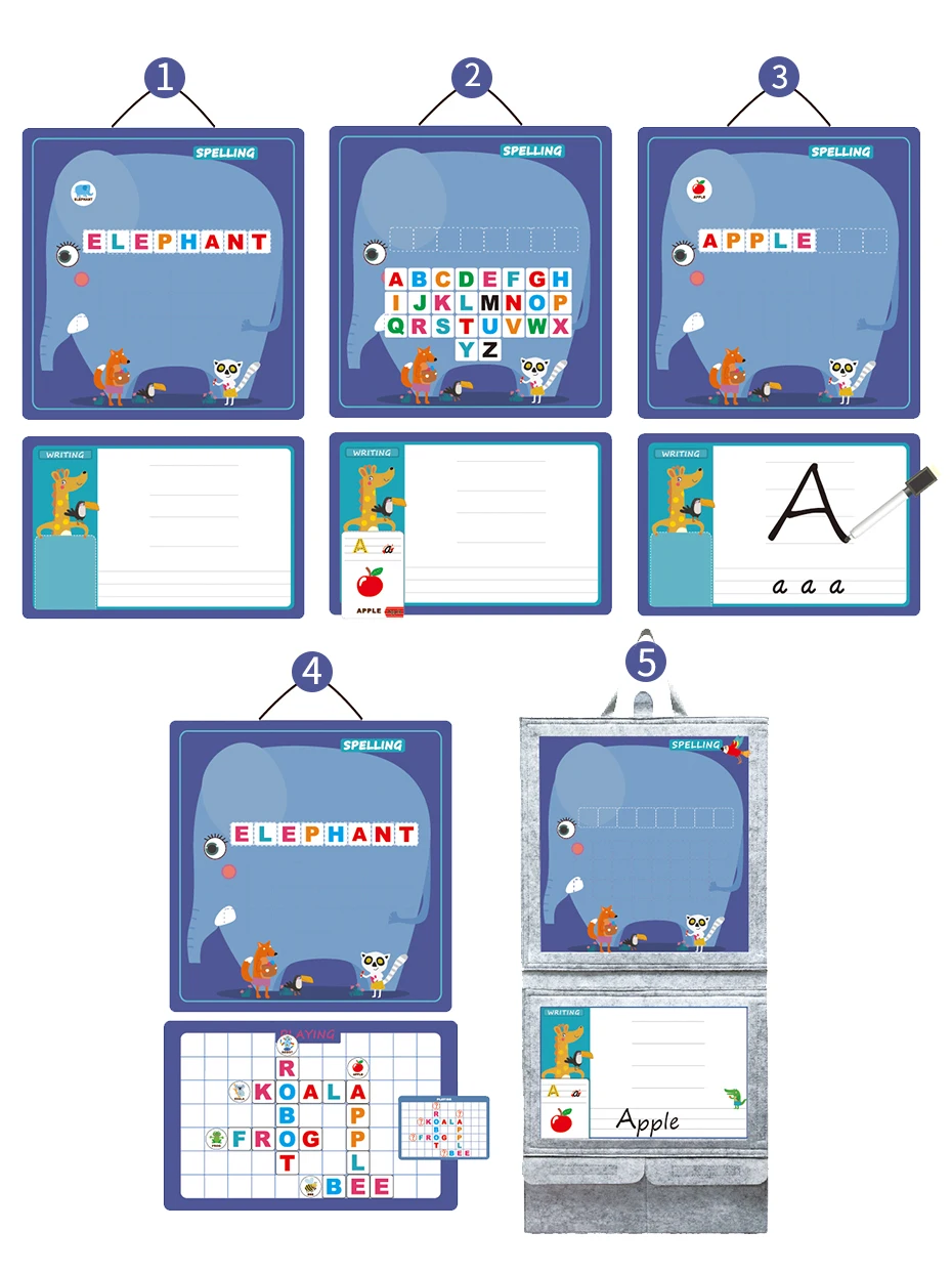 1. Дошкольные образовательные игрушки обучающий инструмент 2. Используется для развития интеллекта ребенка и практическая ручная способность 3. Выглядят красочно притягивающие внимание детей. Это поможет детям быстро запоминать слова, накапливать больше знаний о Слове и овладевать английскими навыками, является лучшим и незаменимым инструментом для обучения английскому языку. 4. Это делает обучение веселым, обогащает воображение ребенка, стимулирует логическое мышление детей, улучшает координацию рук и глаз и способность к обучению. 5. Подходит для домашних дошкольников и детского сада. Предупреждение: ОПАСНОСТЬ УДУШЬЯ-мелкие детали. Не для детей до 3 лет.