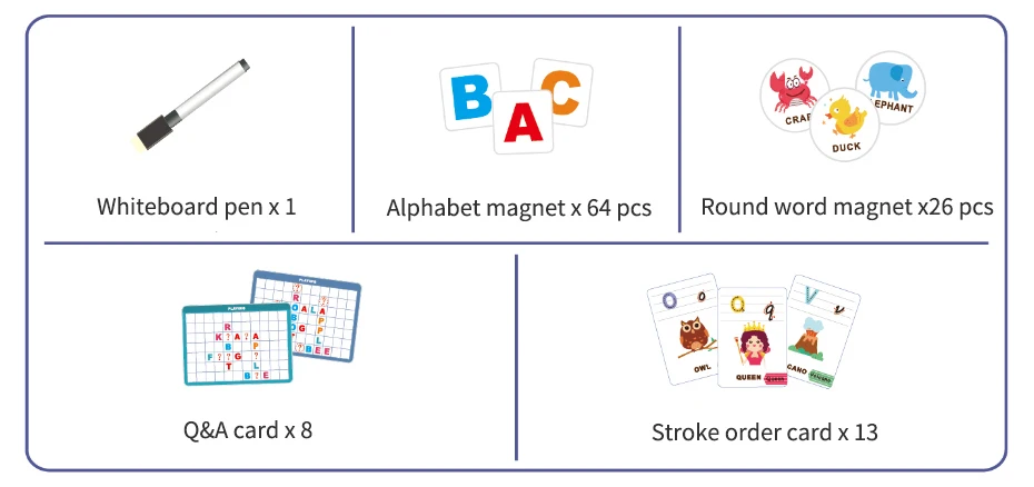 Ручка для белой доски X 1 круглый магнит для слов X 26 карточка для заказа X 13 алфавит на магнитах X 64 Q & A card X 8