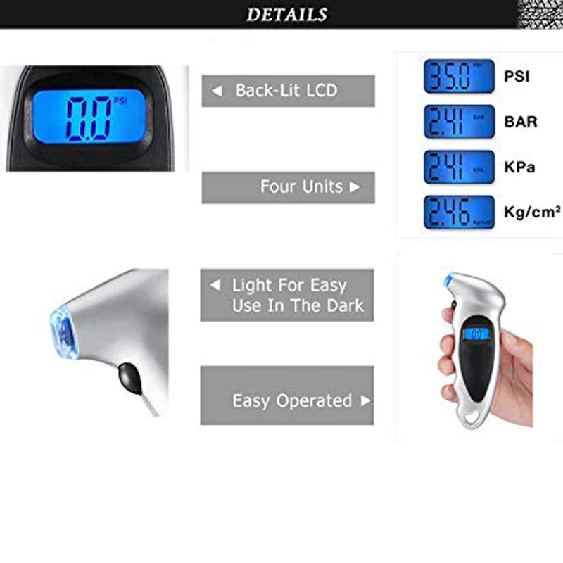 1 *СеребристыйВысокоточный электронный цифровой манометр для шин
