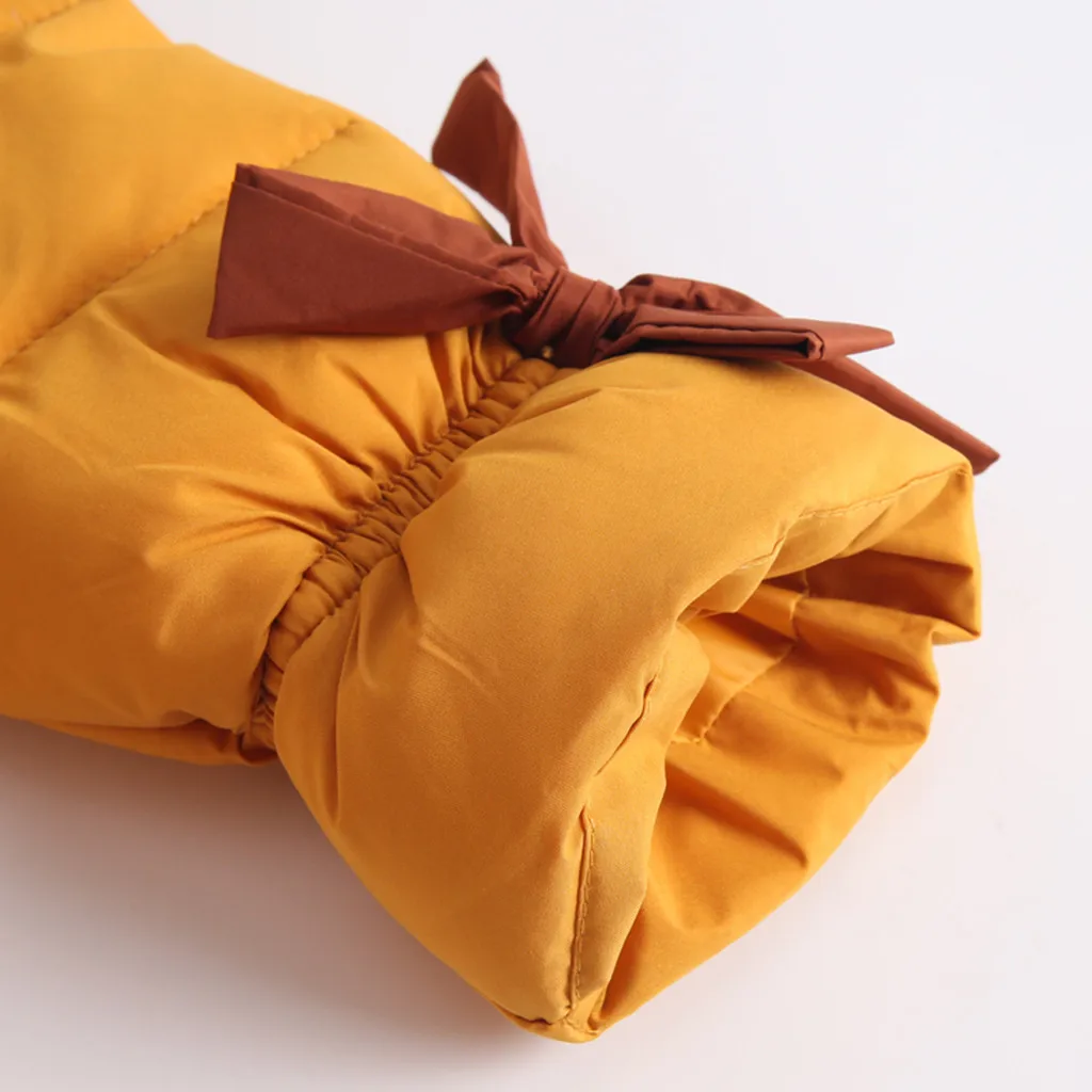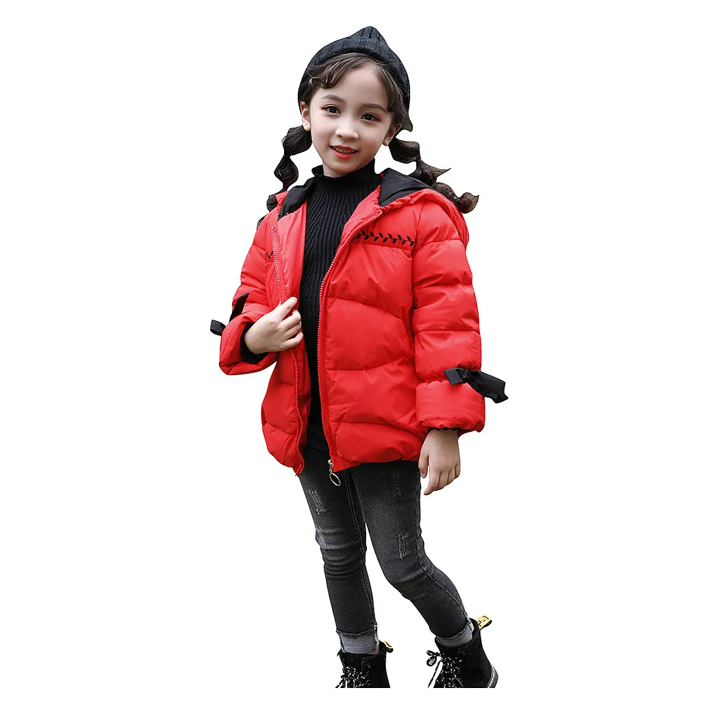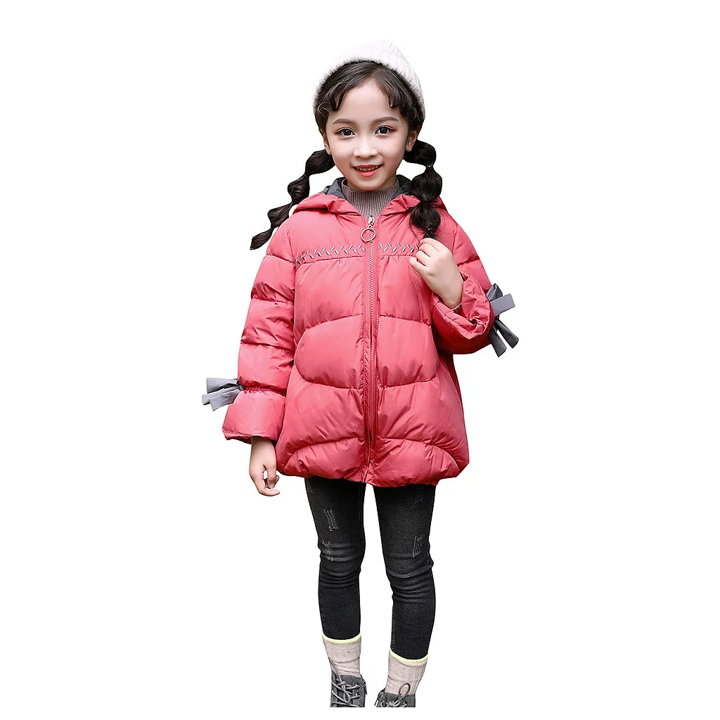 Детское платье с бантом для малышей; зимнее ветрозащитное однотонное пальто; теплая верхняя одежда с капюшоном; куртка