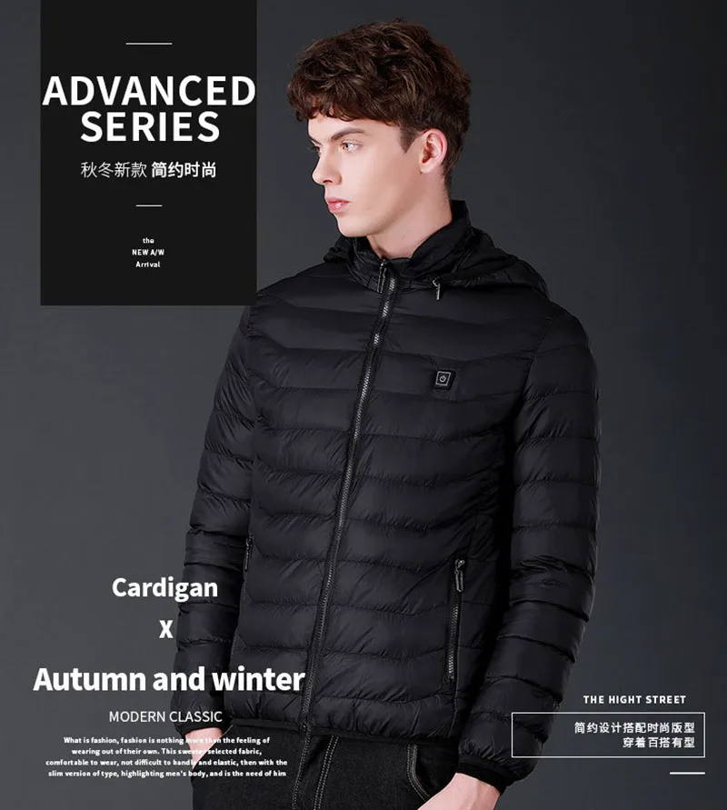Мужские и женские куртки с подогревом, уличная жилетка, пальто с USB электрическим аккумулятором, длинные рукава, теплые куртки с капюшоном, зимняя теплая одежда для катания на лыжах (внешний аккумулятор не входит в комплект)