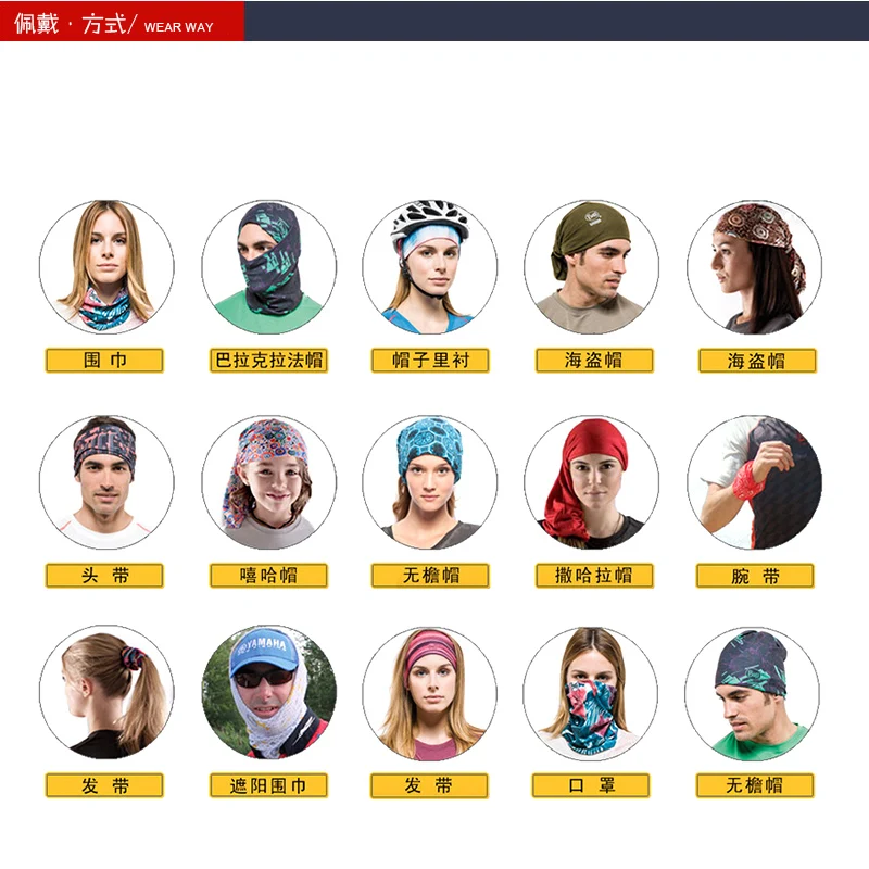 16 различных способов для ваших приключений и повседневной жизни, можно носить как головные уборы, нарукавники, шарф бандана, повязка от пота на голову, Балаклава, маска для лица, шапочка, шейный платок, бандаж, повязка на руку, повязка на голову.