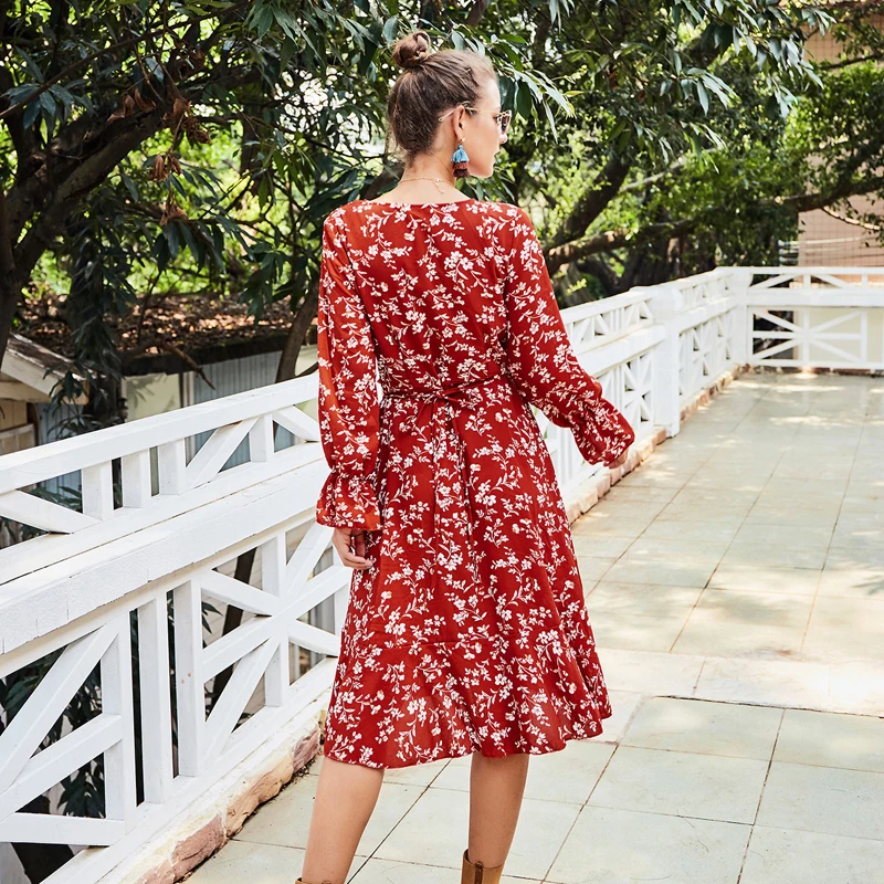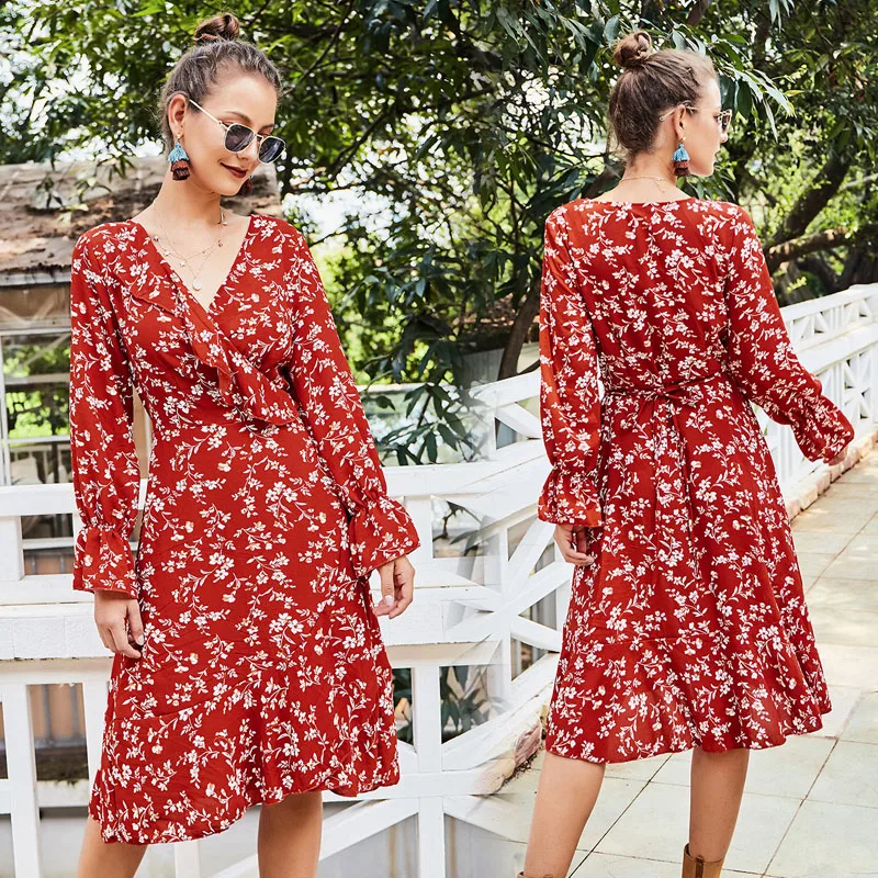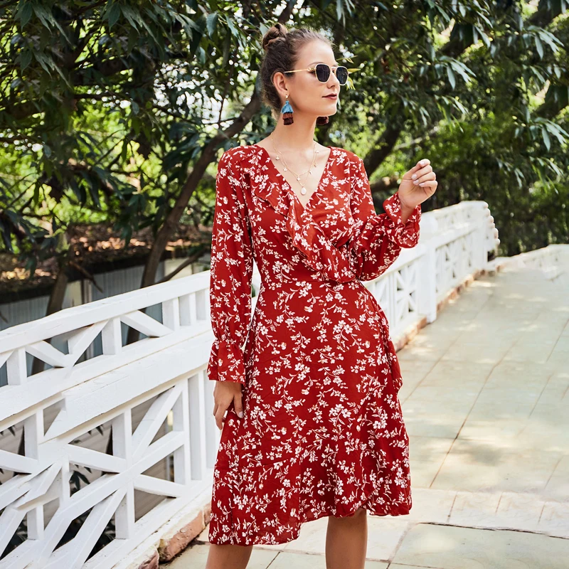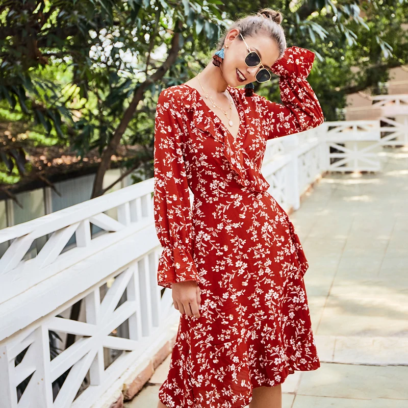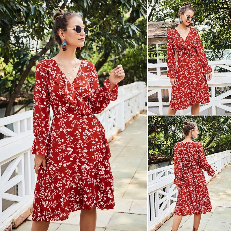 * Описание товара: Женский, Цветочный v-образный вырез, с длинными рукавами, с длинными рукавами, модный, повседневный