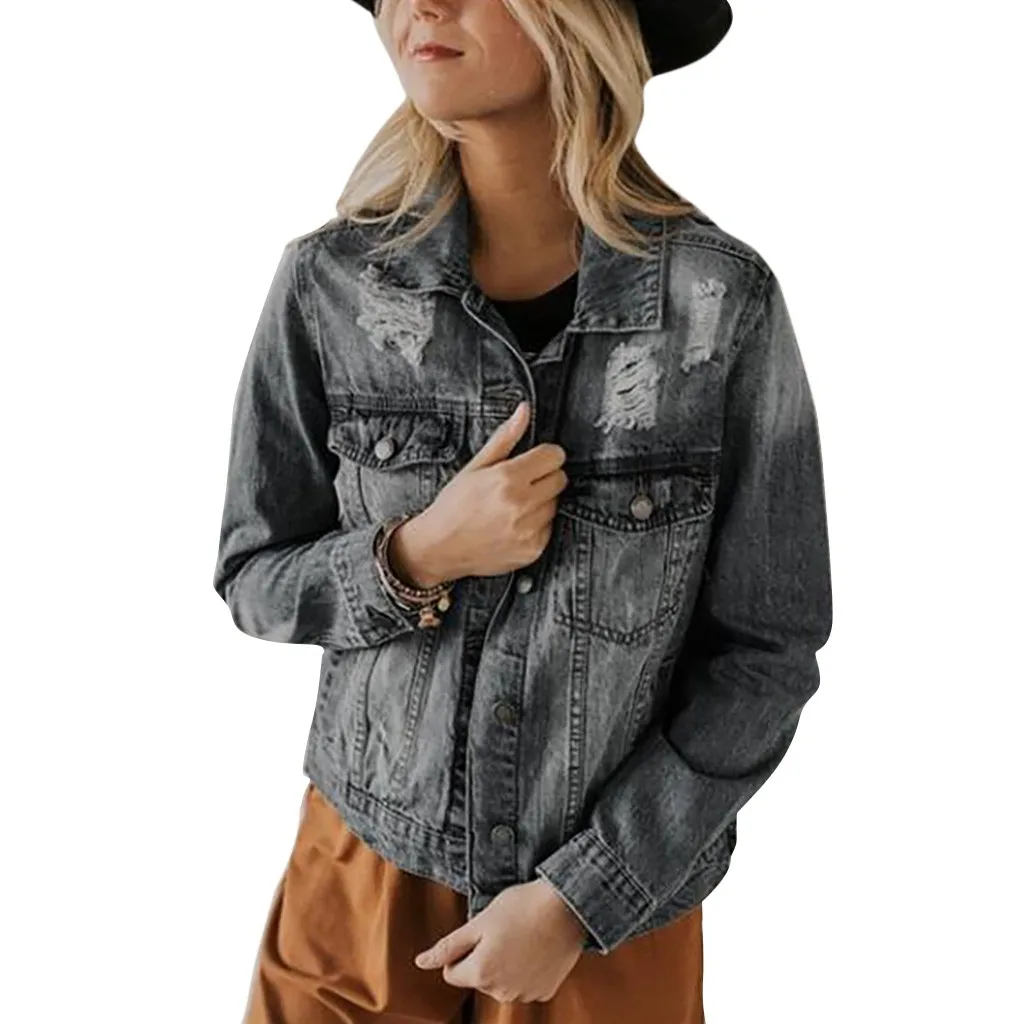 Women Long Sleeve Denim Coat Ladies Casual Jacket Outwear Jeans Overcoat