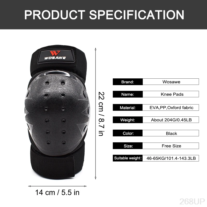 Наколенники изготовлены из высококачественной и прочной ткани. Подкладка из пены EVA обеспечивает отличную защиту, не ограничивая движений и позволяя наслаждаться спортом!