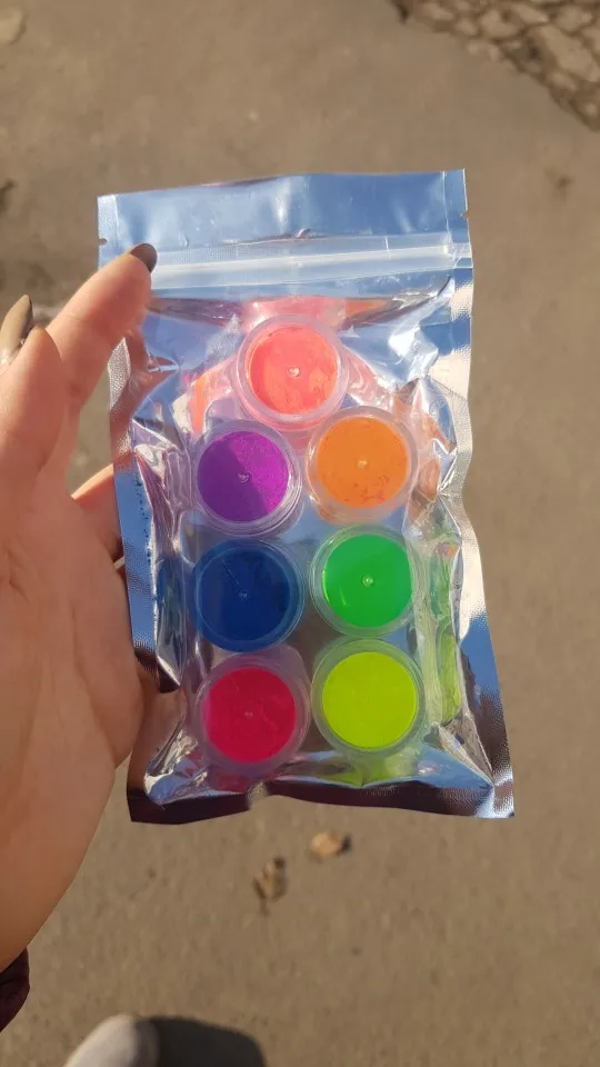 Цвет: розовый/зеленый/синий/красный/оранжевый/желтый/фиолетовый Вес: 5g Срок годности: 3 года Применение: используется для Макияжа Теней, пудры nail dip Функция: водонепроницаемый/водостойкий Количество: 7 шт. смешанных цветов (denpends, что вы покупаете) Посылка: 7 шт. разных цветов Примечание: Перед использованием на лице или ногтях, пожалуйста, нанесите немного на мочку уха, чтобы проверить, чувствуете ли вы это или нет.
