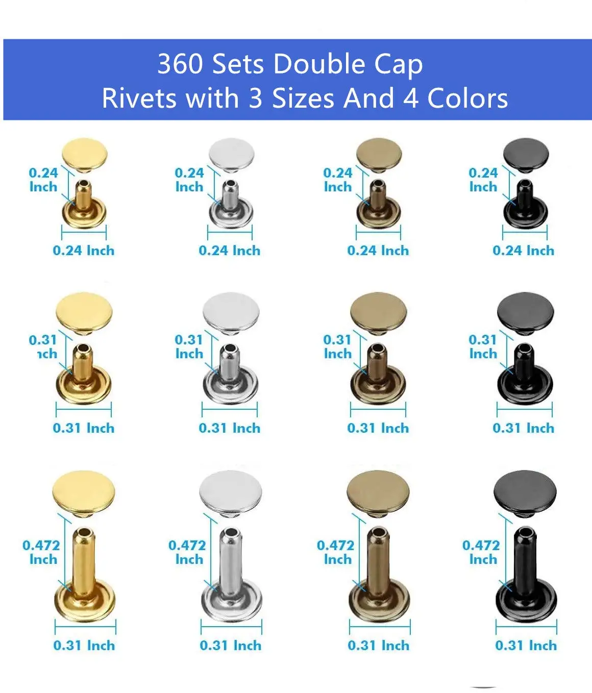 ▶Комплект заклепок: 4 цвета: золотой, серебряный, черный и бронзовый. Всего 360 комплектов. Поставляется с пластиковой коробкой для сохранения. Дайте плоскогубцы ▶Размер: эти кожаные заклепки доступны в 3 размерах s: 6x6 мм, 8x8 мм, 8x12 мм. Примечание: Пожалуйста, проверьте размер перед покупкой. ▶Высокое качество: изготовлены из никелевой меди, эти заклепки с двойным колпачком устойчивы к ржавчине и долговечны и не выцветают. ▶Простота в использовании: следуйте инструкциям на изображении, чтобы легко установить. Даже если вы новичок, включенные инструменты для штамповки и anvils обеспечивают быструю и легкую установку. ▶Широко используется в: сделай сам кожаные изделия, браслеты, шапки, джинсы, ветровки, ремни, обувь, сандалии, пуховики, сумки и так далее.