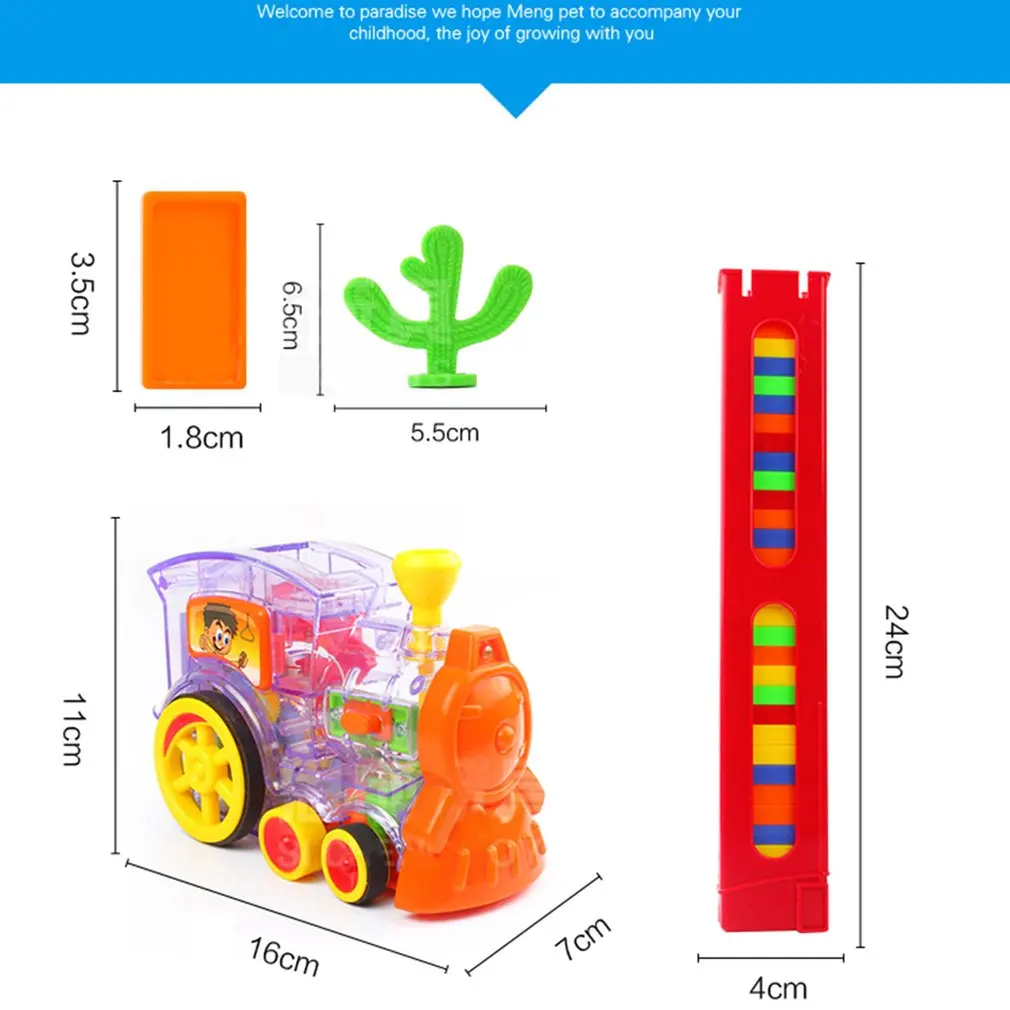 Children's Domino Train Car kit With Sound Light Automatic Emission Set Up Blocks Elevator Springboard Bridge Set kids Toys