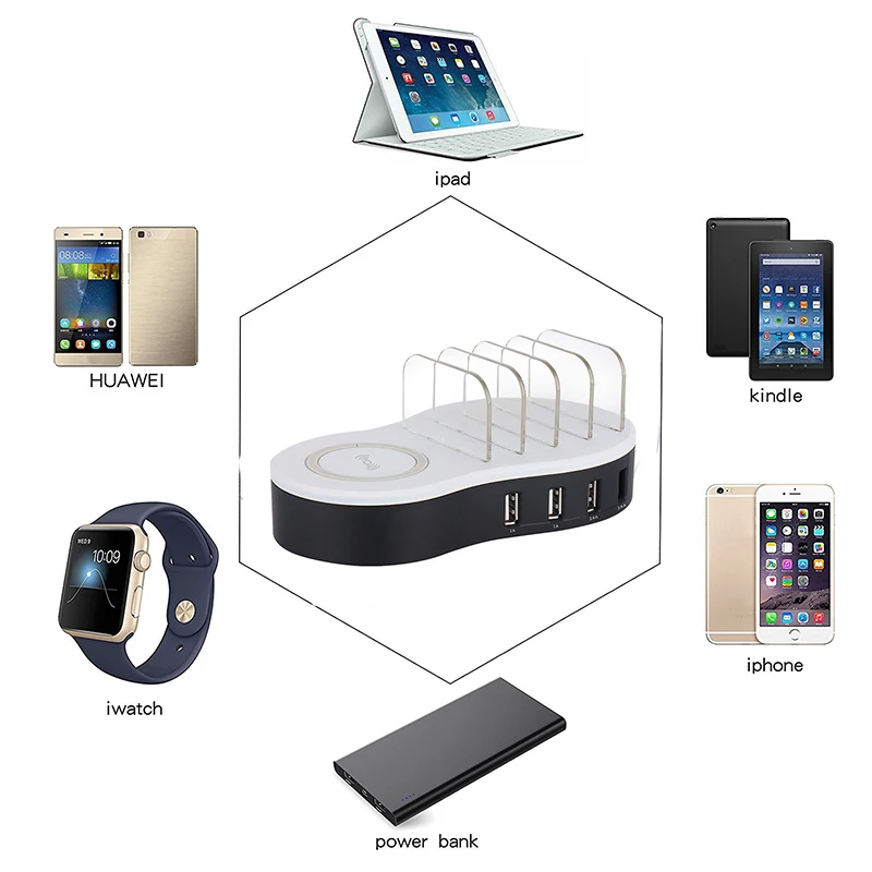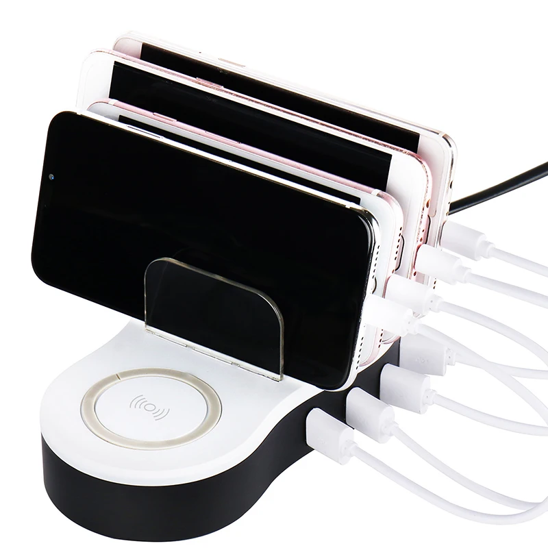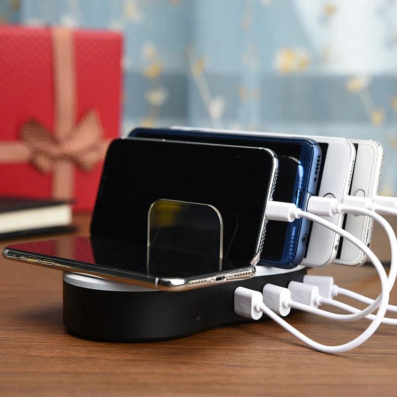Four 5V 1A-2.4A USB charging ports and one 5V/1A 5W wireless charging