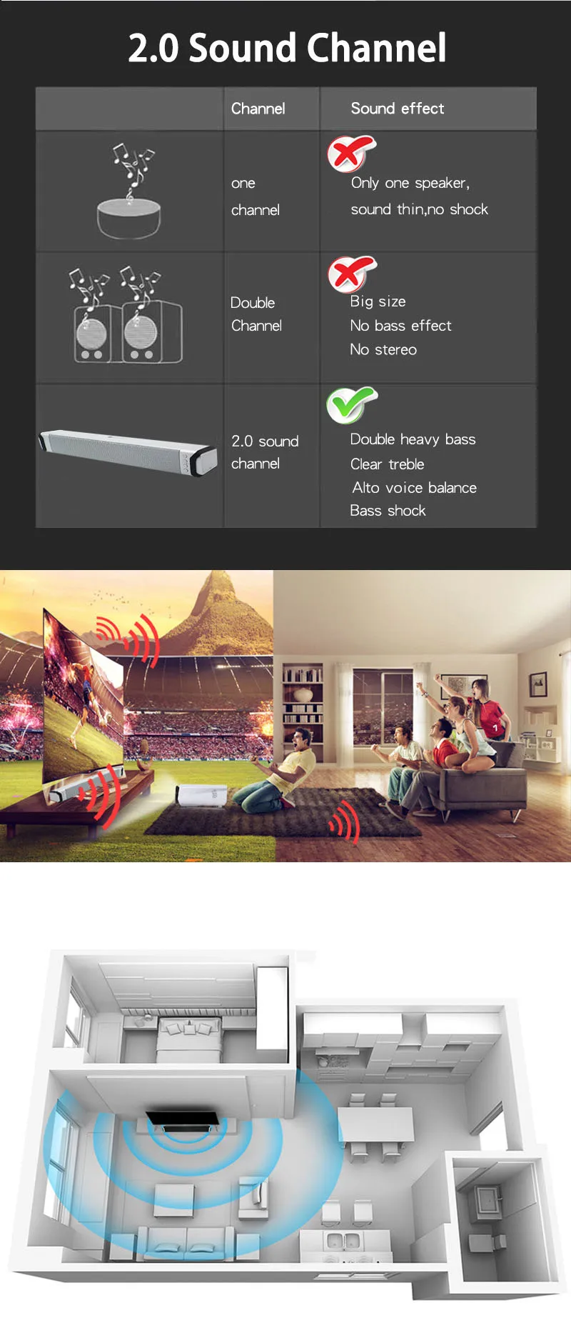 Беспроводной Bluetooth динамик Soundbar, Сабвуфер Звук бар стерео домашний кинотеатр портативный компьютер аудио музыкальный центр