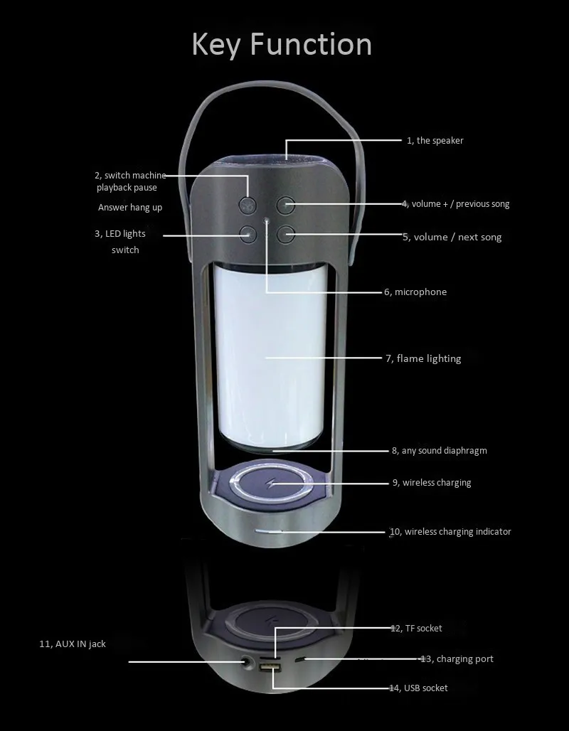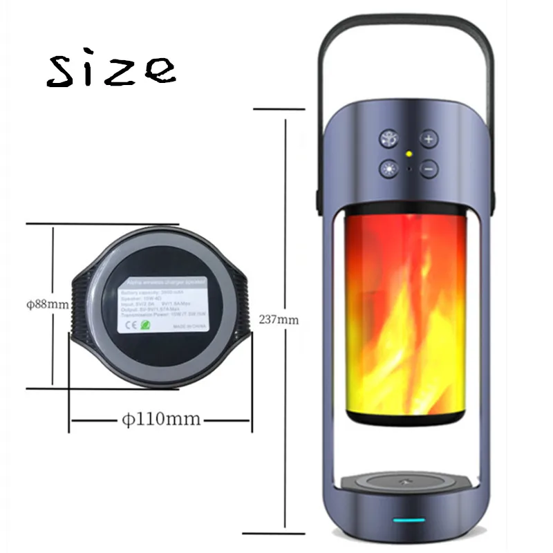 Новинка 2019, портативный Bluetooth динамик с микрофоном, многофункциональный, 10 Вт, Быстрое беспроводное зарядное устройство, мобильный телефон, уличный светильник с пламенем, освещенный Ночной светильник, поддержка TF AUX USB