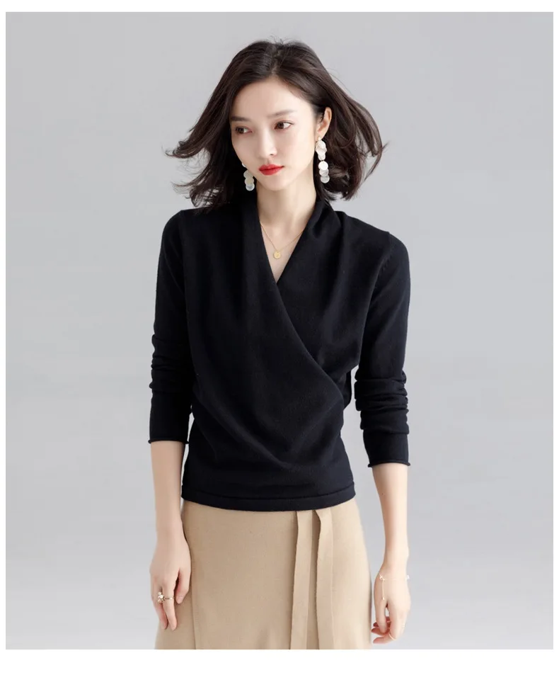 Женский вязаный свитер с v-образным вырезом, осень 2019US $32,57