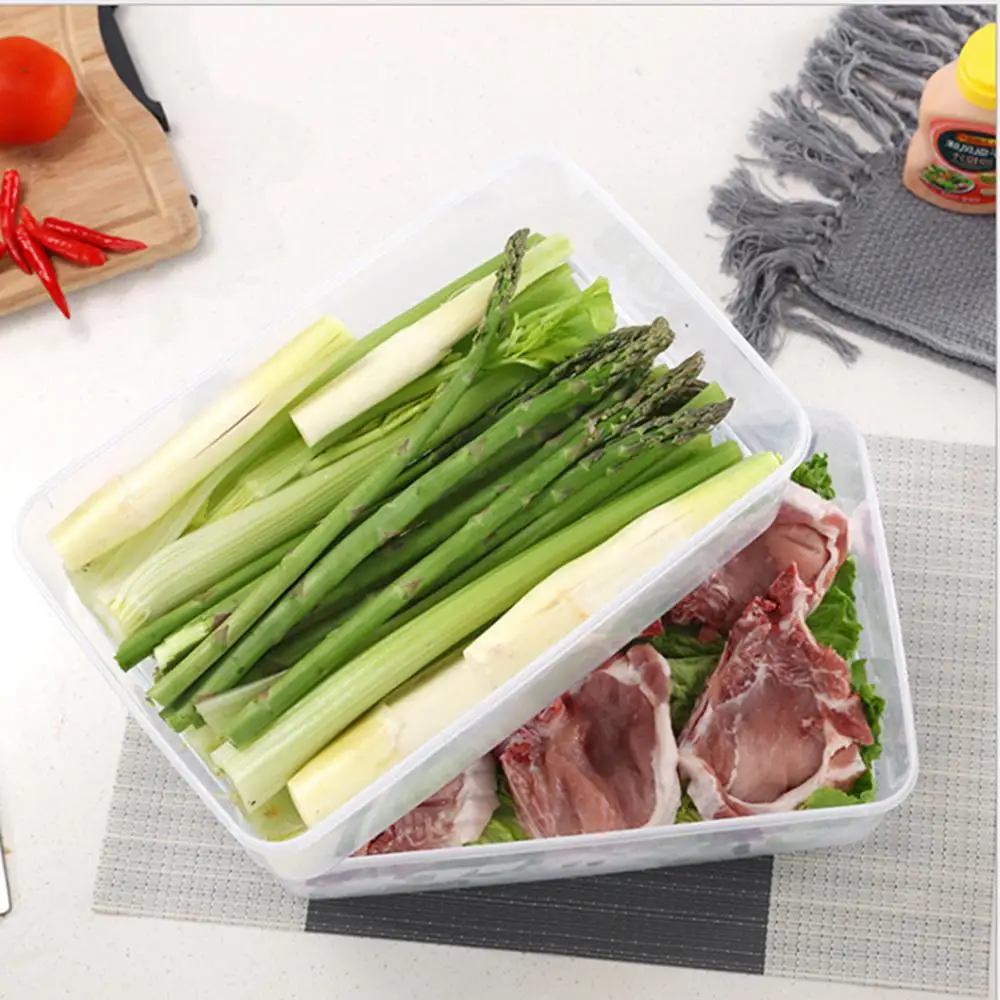 Особенности: 1. Безопасность и здоровье: ПП пластик. Продукты высокого качества могут привести Вас и Вашу семью к здоровому питанию. 2. Идеальный дизайн и высокое качество. Отличный инструмент для идеального хранения и сохранения свежести. Легко использовать и чистить. 3. Отличный контейнер для морозильной камеры. Параметры: Материал: PP Размер: 34x22x10 см/13,38x8,66x3,93 дюйма Вес: 350 г Посылка включает в себя: 1 х контейнер для хранения продуктов