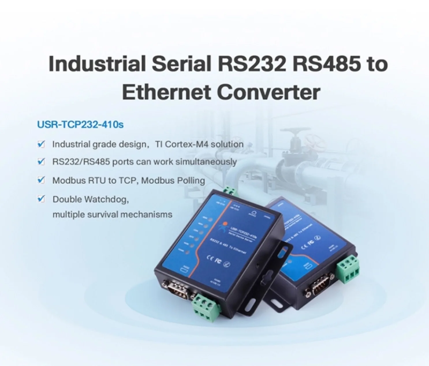 Описание продукта: USR-TCP232-410s-это промышленный последовательный ethernet-конвертер, который может осуществлять двунаправленную прозрачную передачу между последовательным RS232/RS485 и Ethernet. Больше не думайте о деталях, конвертации протоколов внутри сервера. Через простые настройки через веб-страницу или программное обеспечение настройки можно присваивать рабочие детали, реализовывать серийные данные и посылка TCP/IP данных прозрачной передачи.