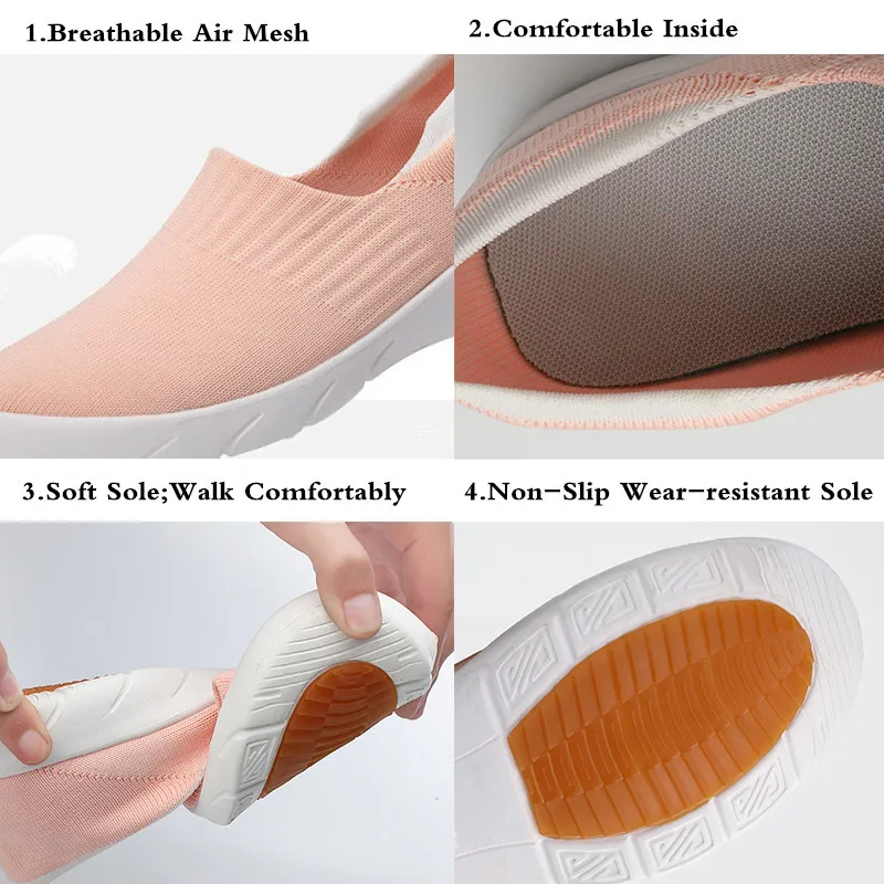 1. Дышащая сетка 2. Удобные внутри 3. Мягкая подошва; Удобно ходить 4. Нескользящая износостойкая подошва