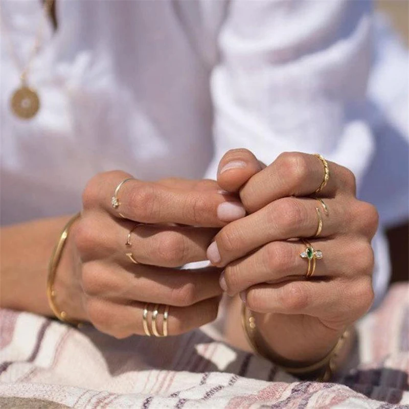 ROMAD 925 стерлингового серебра тонкие кольца для женщин изящное кольцо с зеленым камнем золотого цвета кубического циркония обручальное кольцо ювелирные изделия R50