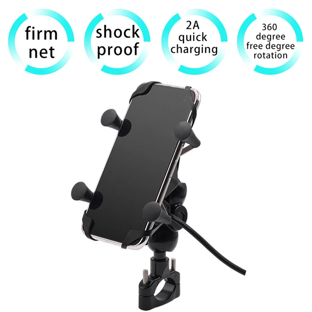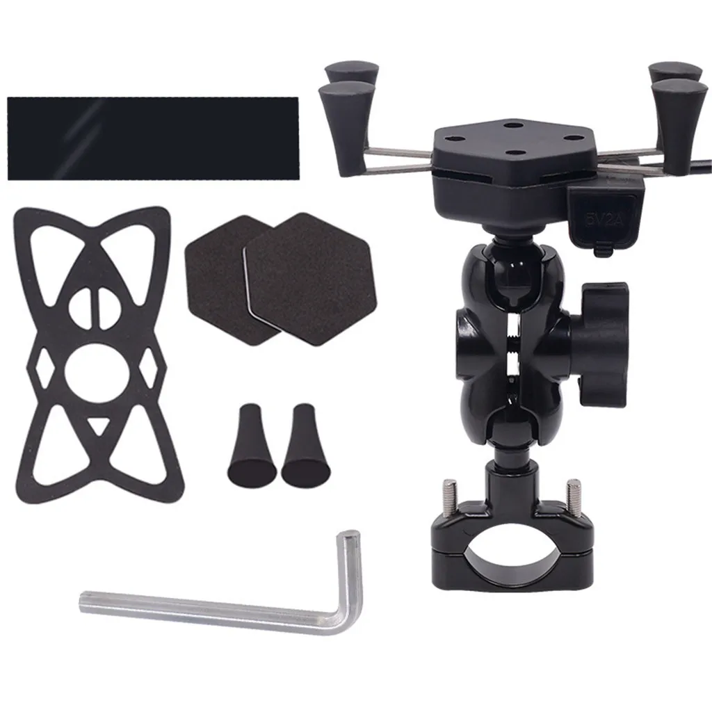 Особенности: Материал из алюминиевого сплава, быстрая зарядка 2А мобильного телефона, ударопрочный и Анти-осень, бинты фирма, водонепроницаемый, широкое применение, легкая установка, 360 ° вращение.