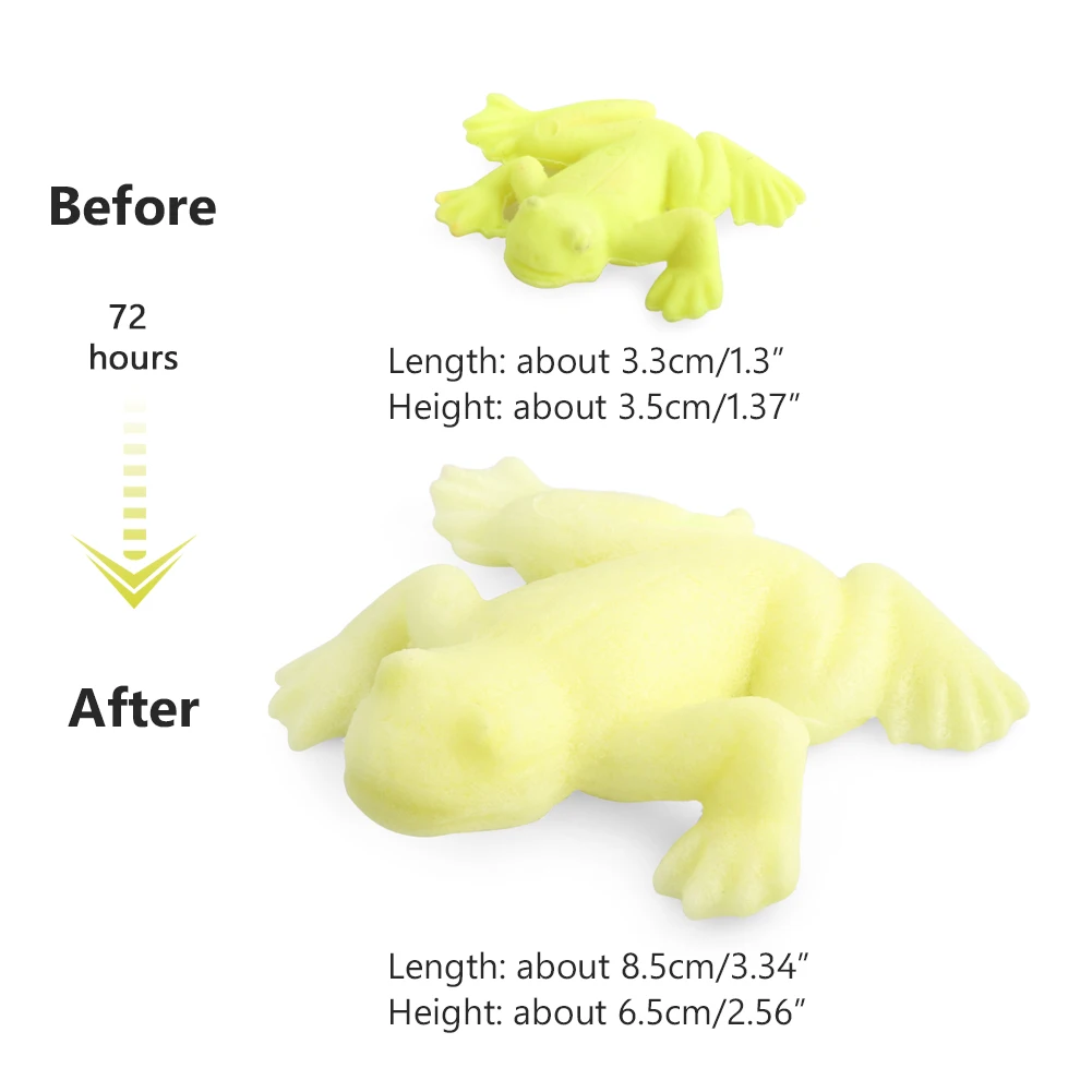 Наш увеличивающийся в воде животные могут быть расширены до нескольких раз их оригинального размера!Просто погружайте магических животных в воду, и они вырастут до максимум в течение 4 дней.