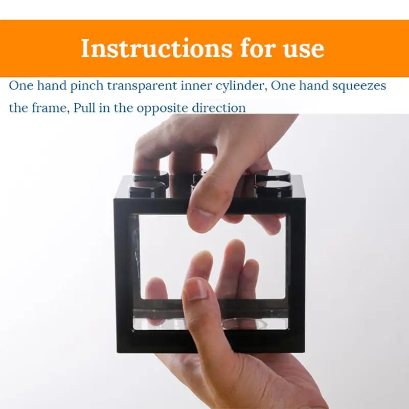 [Features] 1. Open the aquarium: Gently push the sides of the aquarium and use both hands to pull the frame cover in the opposite direction toward the tank.