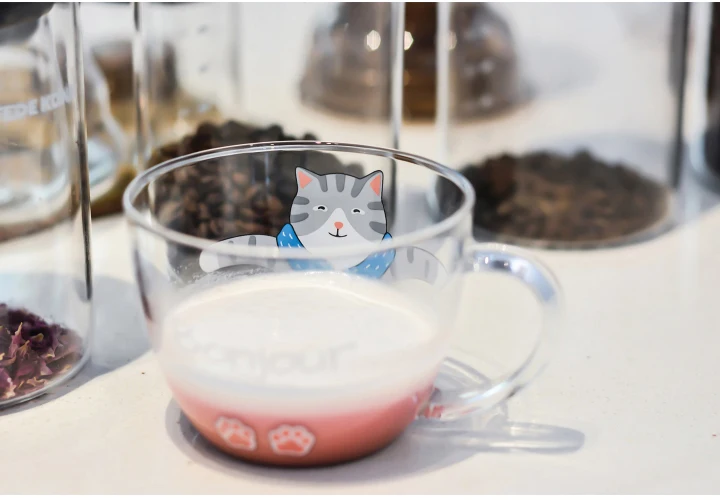 350 мл стеклянная чашка с изображением мультяшного дяди кота, милая чашка для молока, сока, кофе, офисный завтрак, послеобеденный чай, вода, Кошачий коготь, кружки, Бытовая Посуда для напитков