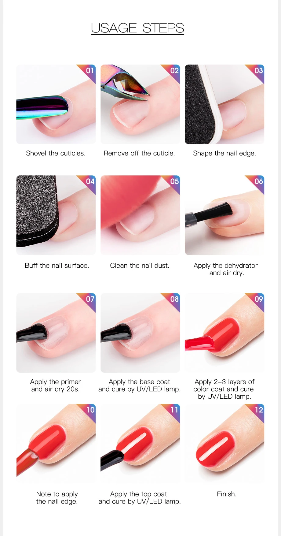 2. Так как некоторые цвета очень светильник, пожалуйста, нанесите гель для ногтей, затем вы можете увидеть правильный цвет, как описано.