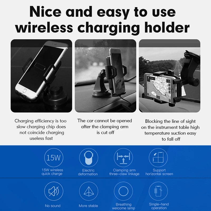 Это зарядное устройство совместимо со всеми мобильными телефонами с беспроводной зарядкой на рынке. И его можно легко зафиксировать на автомобильном воздуховоде.