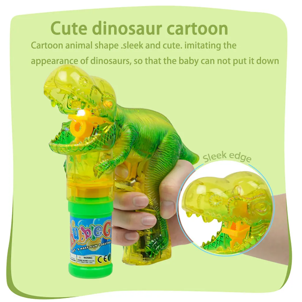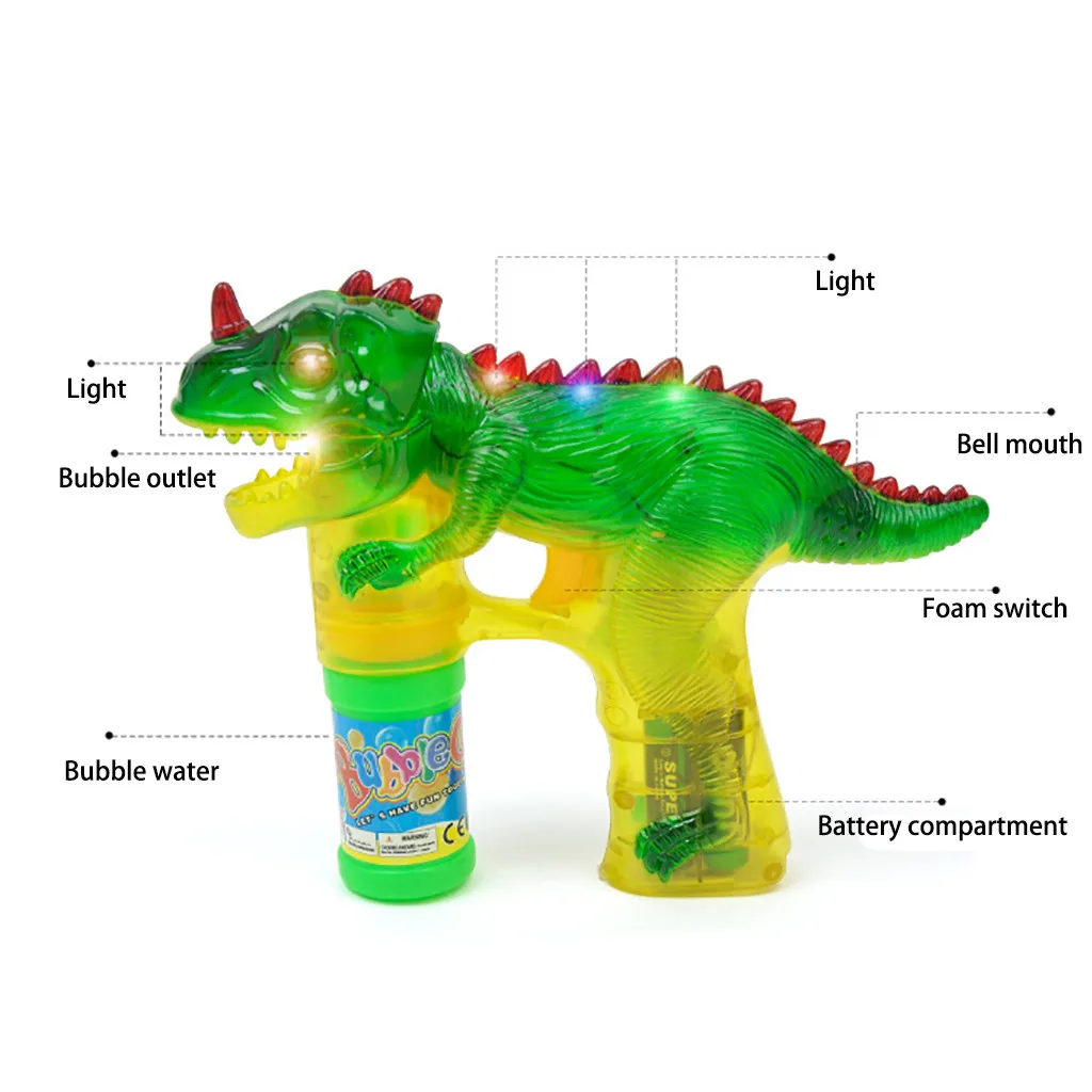 Наш динозавр пистолет для мыльных пузырей воздуходувка делает крутые румяные звуки со светодиодными лампами, чтобы сделать время пузырей еще более очаровательным