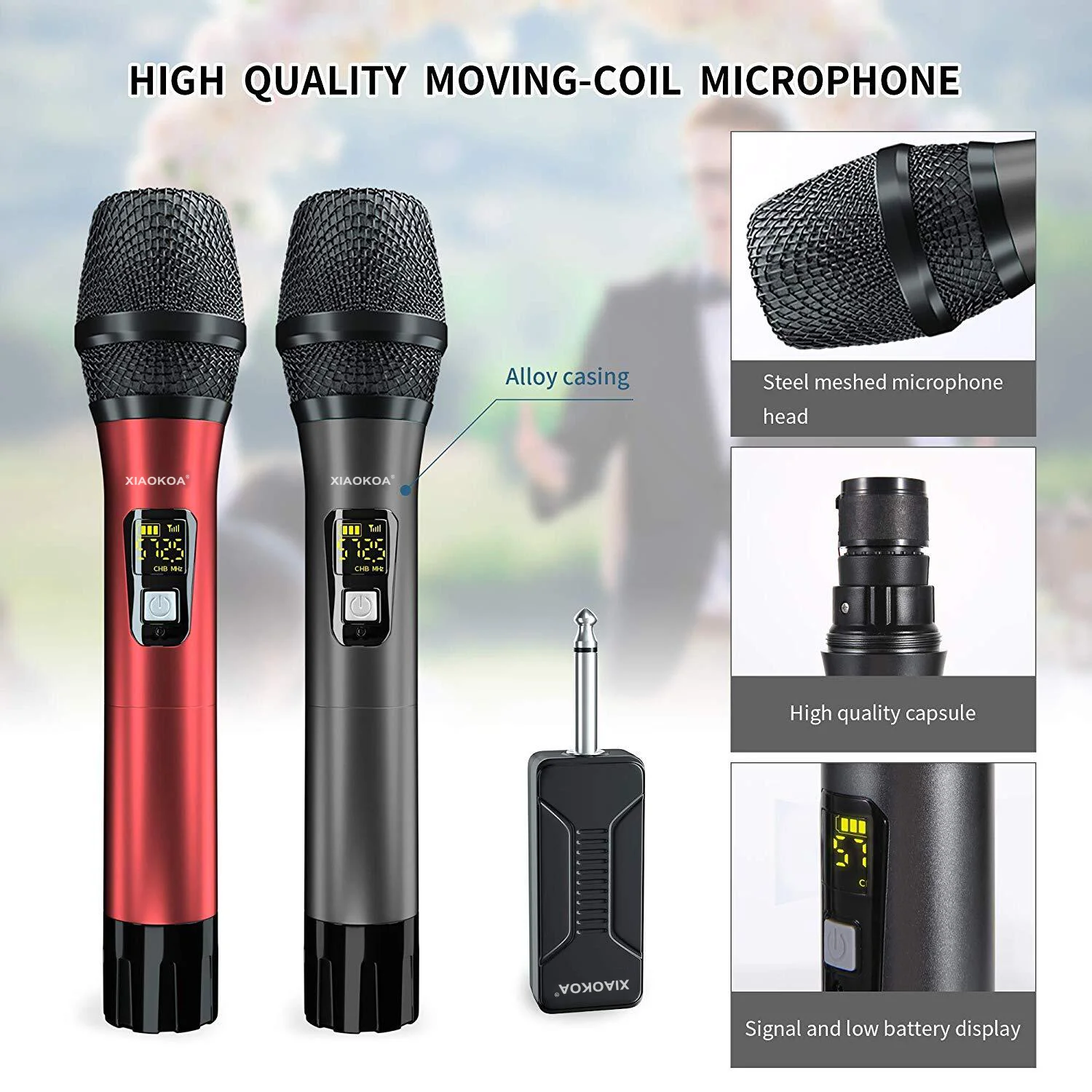 Для каждого беспроводного микрофона требуется 2 батарейки АА. Получатель может быть заряжен (Рабочая 6 часов зарядки 2,5 часов)