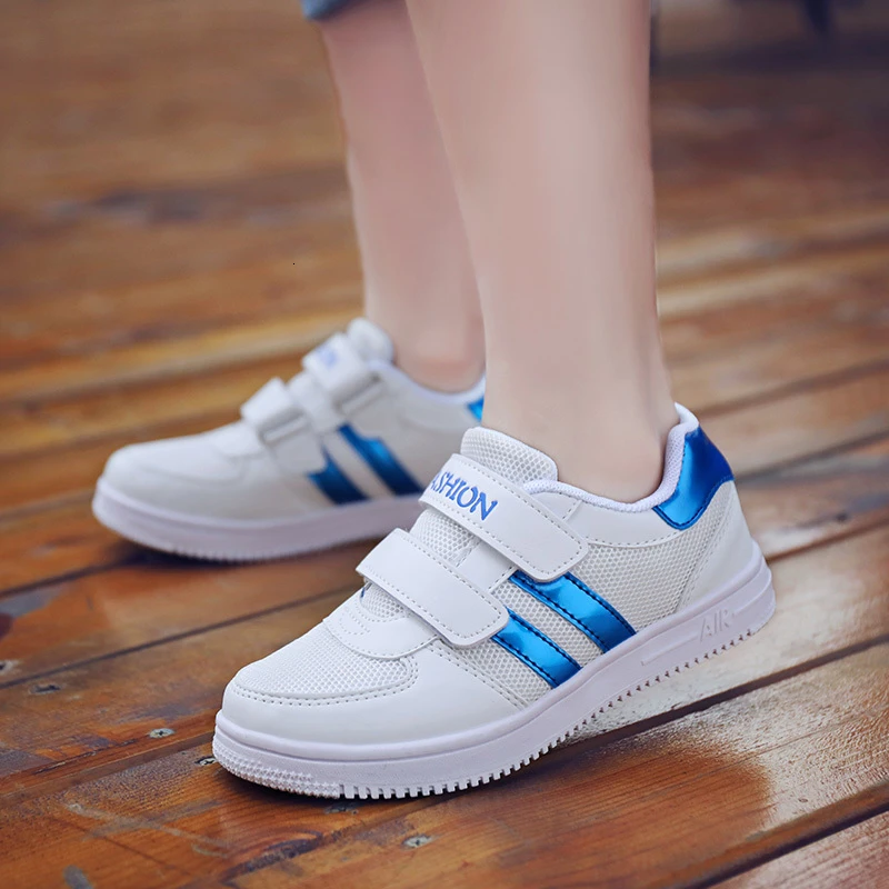 Детская беговая Обувь; Белые кроссовки для мальчиков; Спортивная обувь из искусственной кожи; Tenis Infantil; Обувь для девочек на липучке; Повседневная обувь; Chaussure Enfant