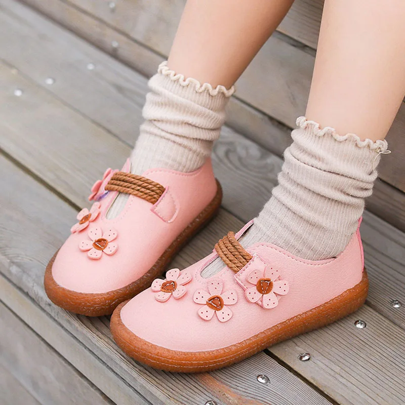 Children Girls Beautiful Shoes Spring Autumn Casual Fashion Baby Girl Flats Kids Breathable Anti-Slip Soft Soled Nude Shoes