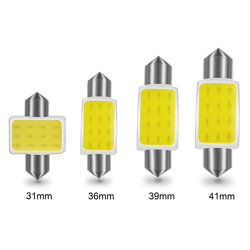 100 шт. 31/36/39/41 мм Светодиодные Автомобильные лампы 12SMD COB гирлянда C5W внутренний свет авто Чтения плафон фонарь освещения номерного знака, оптовая продажа, 12V