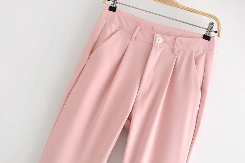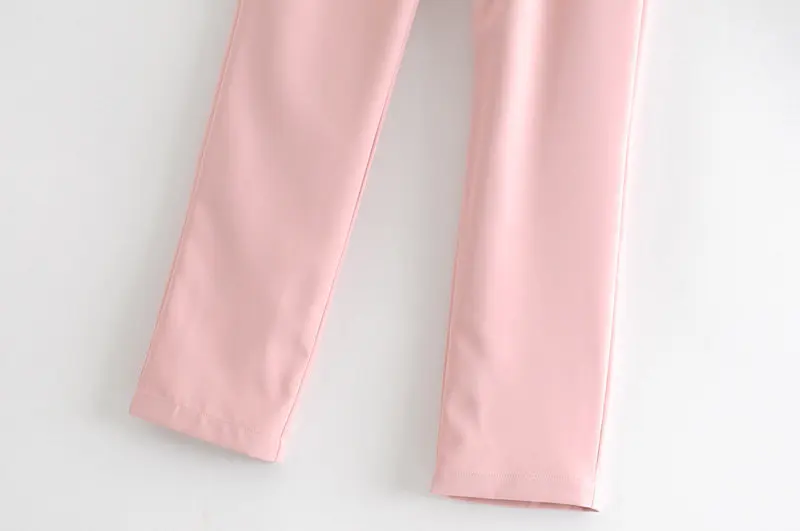-Осенние повседневные женские брючные костюмы ярких цветов однобортный длинный офисный Блейзер Куртка пальто и женские брюки комплект из двух предметов розовый