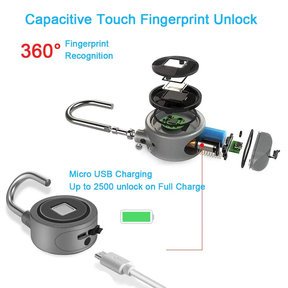 • 【Note】this представляет собой замок с bluetooth управлением с помощью приложения для регистрации (необходимые разрешения на доступ к вашим местоположением, связаться с нами, цифровых зеркальных фотоаппаратов и складских помещений), поэтому, если вы имеете что-то против регистрации оставит ваш номер телефона или адрес электронной почты тот адрес, который указан, пожалуйста, выберите другой с только технологией отпечатков пальцев, без bluetooth и без регистрации. • 【Широко Используется для внутренних и наружных мест, подходит для шкафчиков для тренажерного зала, чемоданов, сумок для гольфа, сумок, школьных шкафчиков, мебели, шкафов, велосипедов и других вещей, которые вы хотите защитить. • 【USB Перезаряжаемые 】the умный замок оснащен 300 мА/ч, Перезаряжаемые литиевая батарея, которая используется для 3 месяцев в том случае, если аккумулятор полностью заряжен (Выходная мощность: 0,4 Вт). Срок службы блокировки bluetooth составляет 2 года. • Водонепроницаемость и защита от пыли IP65 этот замок для отпечатков пальцев может использоваться в дождливые дни. Соответствует международному стандарту IP65 для водонепроницаемости и защиты от пыли. • 【Прочная конструкция 】 корпус замка изготовлен из алюминиевого сплава (сплав ADC12), а его окантовка изготовлена из нержавеющей стали (нержавеющая сталь 303) для высокой твердости и высокой прочности на сжатие. Замок отпечатков пальцев с bluetooth-подключением Нет больше ключей или кодов, этот умный замок разблокирован просто большим пальцем или смартфоном. С помощью приложения, доступного в Google Play или App Store, блокировка может быть подключена к вашему смартфону через bluetooth. 15 групп отпечатков пальцев, которыми вы можете поделиться с друзьями или семьей. Технические характеристики: Материал: ADC12 алюминиевый сплав + 303 нержавеющая сталь Системные требования для iOS/Android: 4,3 и выше Батарея: встроенный 3,7 V 300 мАч полимерный аккумулятор Батарея Версия Bluetooth: 4,0 Время работы в режиме ожидания: 3 месяца Способ зарядки: Micro USB Посылка: 1 * замка 1 * Usb кабель 1 * Руководство пользователя (на английском языке) Часто задаваемые вопросы о наших замок с Bluetooth управлением: В: Как добавить больше отпечатков пальцев? О: для добавления отпечатка пальца в приложение требуется 6 раз всенаправленной многосенсорной записи на блокировке отпечатков пальцев на 360 °. Перейдите в настройки приложения, следуйте инструкциям на экране, несколько раз нажимайте на сканер отпечатков пальцев, пока он не будет успешно записан. В: Как удалить отпечатки пальцев? О: Удалите непосредственно в приложении. Вопрос: Что делать, если приложение подает запрос «Нет устройства»? О: сначала зарядите замок и включите функцию Bluetooth вашего телефона. Затем коснитесь панели отпечатков пальцев, чтобы активировать блокировку. Светодиодный светильник padlock загорится! Или, пожалуйста, загрузите правильное приложение в соответствии с руководством!