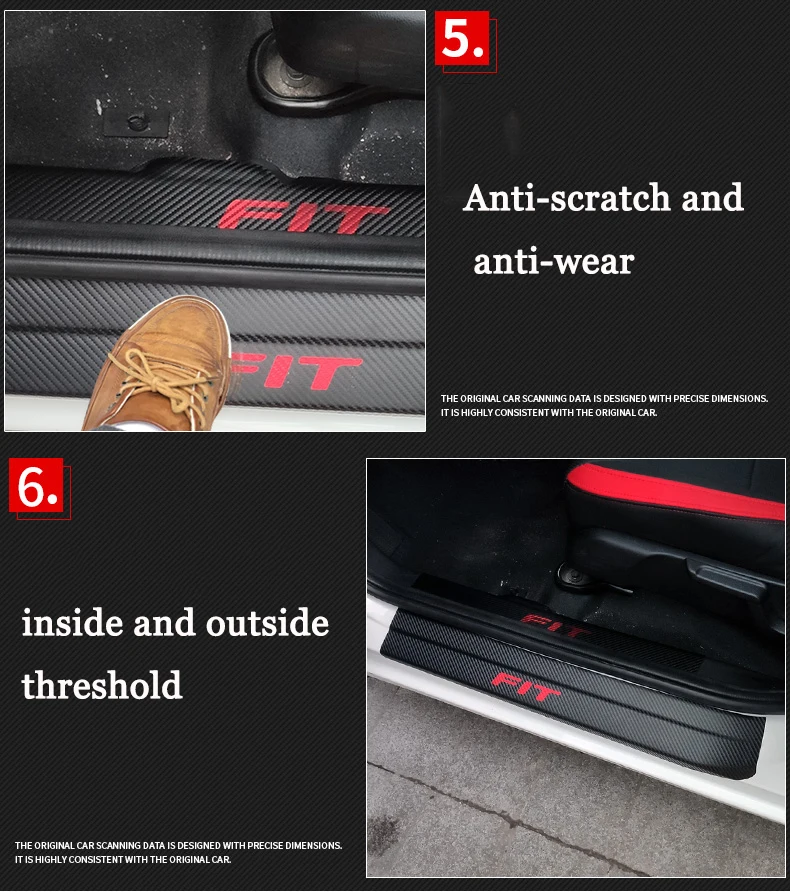 Советы: мы советуем вам нагревать с помощью прикуривателя или нагнетателя горячего воздуха наклейку, прежде чем наклеить в холодную погоду. Особенности: Made изготовлен из 3D углеродного волокна, хорошо подходит для защиты от скольжения в дождливый день. Strong сильный клей, водонепроницаемый, противопожарный. Отлично подходит для обновления и замены. ❸ Лучше для защиты от царапин с полным покрытием автомобиля порога потертости, вверх и сбоку.