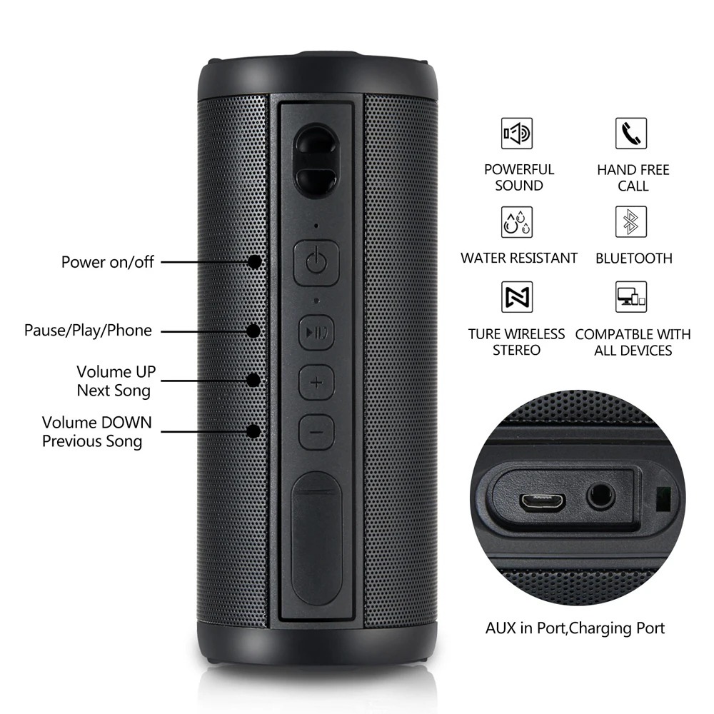 3. Этот беспроводной динамик поддерживает звонки без рук, tf-карту и аудиовход.